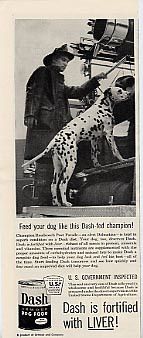 DASH AD WITH DALMATIAN AND FIRE FIGHTER, B&W, 5 1/2" x 13 1/2",