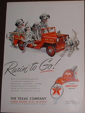 TEXACO DALMATIAN AD, "All-out Action..." Dalmatian puppies
