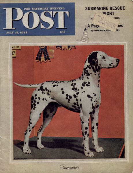 EVENING POST COVER WITH DALMATIAN MOM LOOKING LONGINGLY AFTER HER FIRE