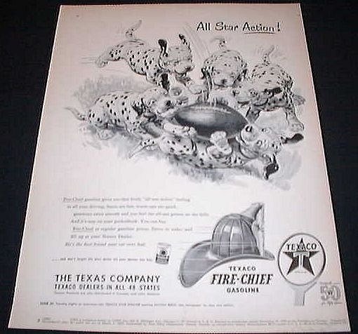 TEXACO DALMATIAN AD, "Off like the wind ...". the puppies take