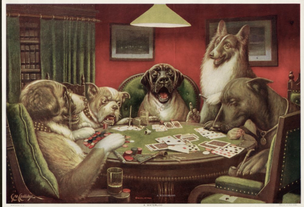 1950's(?) PRINT OF DOGS PLAYING CARDS BY C. M. COOLIDGE, print includes