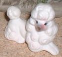 PRETTY WHITE PORCELAIN POODLE FIGURINE, glossy finish, pink nose, 1 3/4"