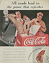 roads lead to the pause that refreshes", 1936 COKE AD WITH MAN STOPPING