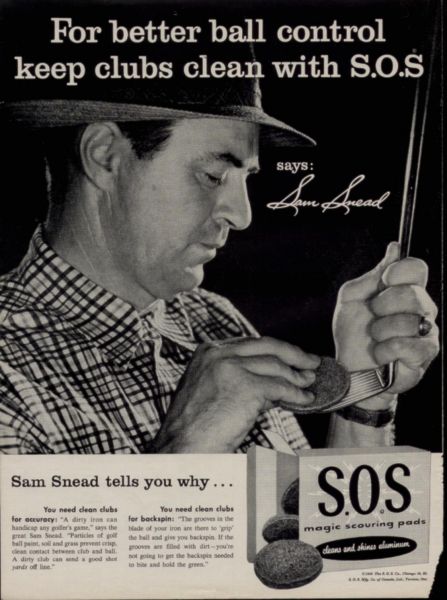 SAM SNEAD SOS AD, 10 1/4" x 14", fine condition with some irregularity