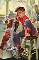 MOMENTS, 1950's PRINT OF BOY WITH HIS PARSON TERRIER PUPPY AT THE DOCTOR,
