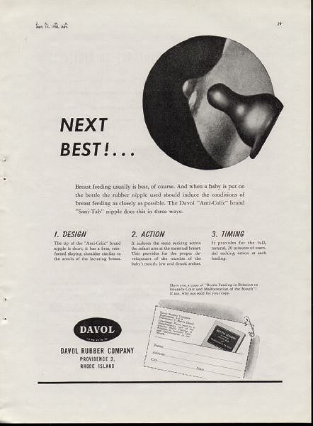 DAVOL RUBBER NIPPLE AD, 8" x 11 1/4", near mint condition