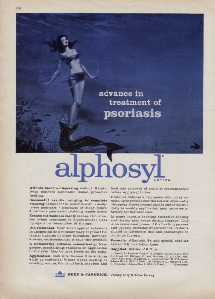 LOTION AD WITH A MERMAID, BLUE BACKGROUND, 6 1/4" x 9 1/2",