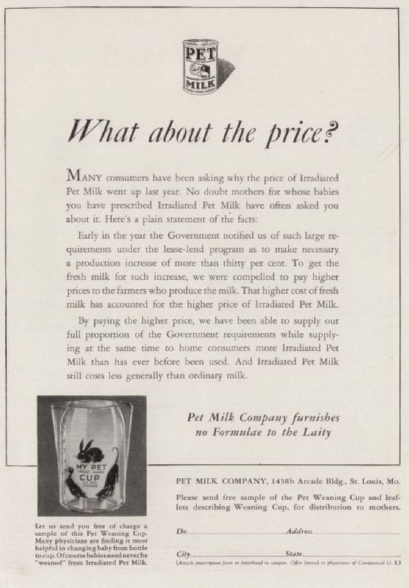 AD OFFERING A PET WEANING CUP PREMIUM, 8" x 11 1/4", very good condition