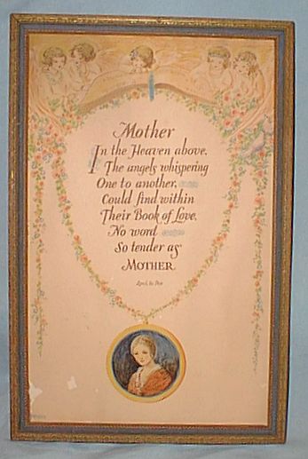 1920's - 30's ART DECO MOTHER MOTTO PICTURE, verse by Edgar Allen Poe in