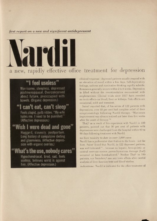 above, 1948, "effective in combating simple depression", 8" x 11", good