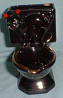 BLACK CAT ON TOILET ASHTRAY AND CIGARETTE HOLDER WALL POCKET, TRIMMED IN